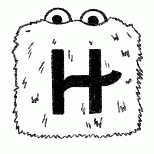 Paglalarawan ng Content: a black and white drawing of a monster with the letter h on it