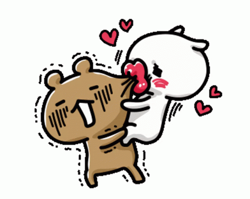 Paglalarawan ng Content: a cartoon drawing of a bear and a cat with hearts around them