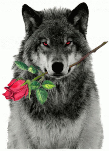 Paglalarawan ng Content: a wolf holding a red rose in its mouth
