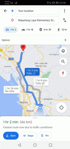 Paglalarawan ng Content: a google maps app shows a route to mapulang lupa elementary sc