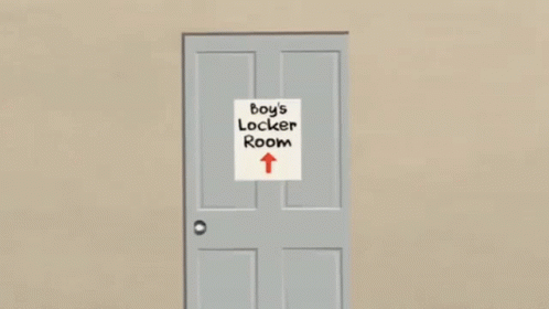 Paglalarawan ng Content: a door that has a sign on it that says boys locker room