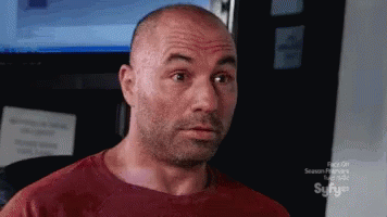 Paglalarawan ng Content: a man with a shaved head and a beard is wearing a red shirt that says syfy on the front