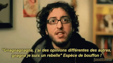 Paglalarawan ng Content: a man with glasses and a beard says gnagnagna j'ai des opinions differentes des autres