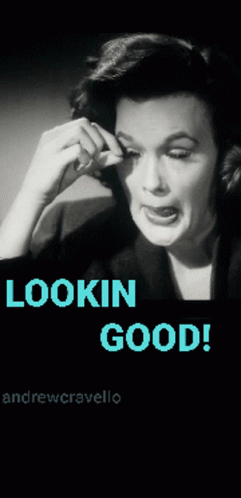Paglalarawan ng Content: a black and white photo of a woman with the words lookin good above her