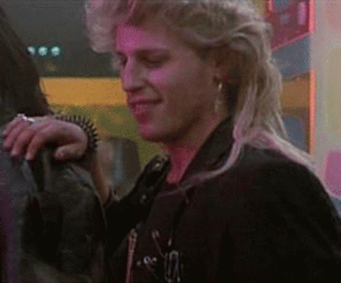 Paglalarawan ng Content: a woman wearing a mullet and a black jacket is standing next to a man .