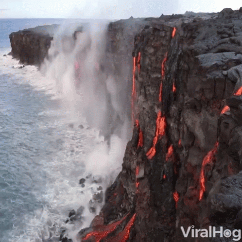 Paglalarawan ng Content: lava coming out of a rocky cliff with the words viralhog below it