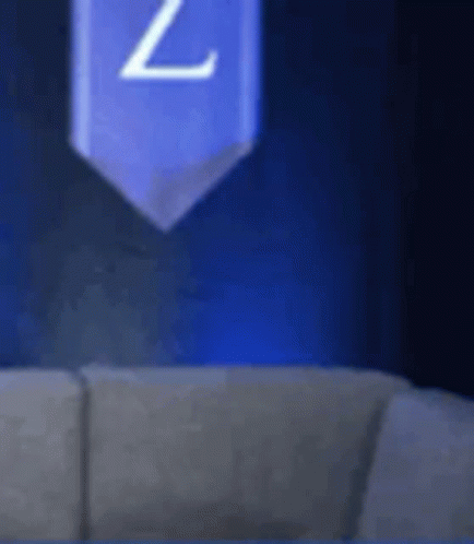 Paglalarawan ng Content: a blue flag with the letter z on it is hanging over a couch in a dark room .