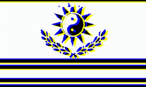 Paglalarawan ng Content: a flag with a sun and a yin yang symbol
