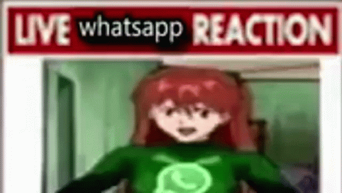 Paglalarawan ng Content: a girl in a green sweater is standing in front of a sign that says live whatsapp reaction .
