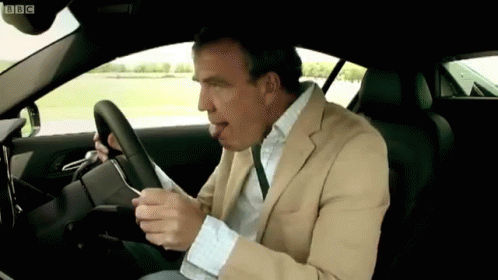 Paglalarawan ng Content: a man in a suit is driving a car with bbc written on the bottom of the screen