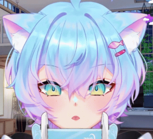Paglalarawan ng Content: a girl with a cat ear is holding a box that says intel on it