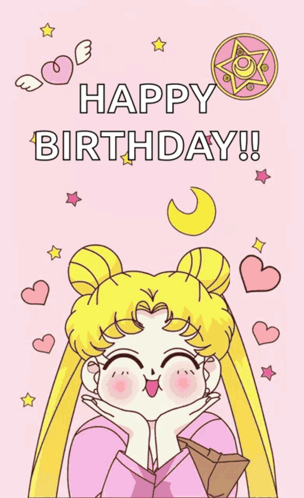 Paglalarawan ng Content: a happy birthday greeting card with a sailor moon character