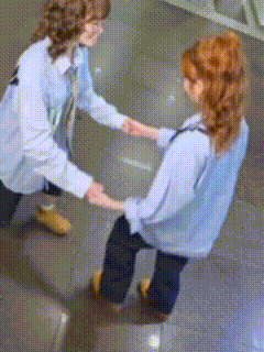Paglalarawan ng Content: a woman in a blue shirt is holding another woman 's hand in a blurry photo