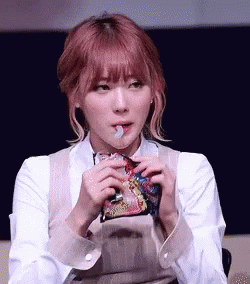 Paglalarawan ng Content: a young woman with red hair is eating a bag of food .