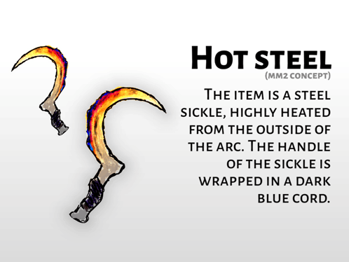 Paglalarawan ng Content: a drawing of a sickle with the words hot steel on the bottom