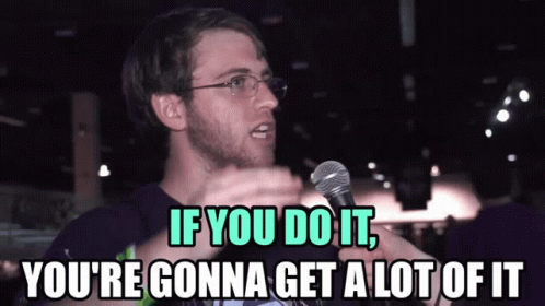Paglalarawan ng Content: a man speaking into a microphone with the words " if you do it you 're gonna get a lot of it "
