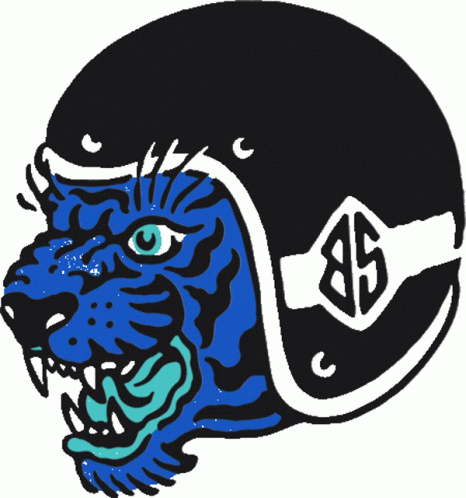 Paglalarawan ng Content: a black and white drawing of a tiger wearing a motorcycle helmet with the letter s on it