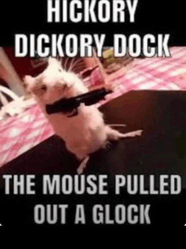Paglalarawan ng Content: a cat is holding a gun in its mouth and the mouse pulled out a glock