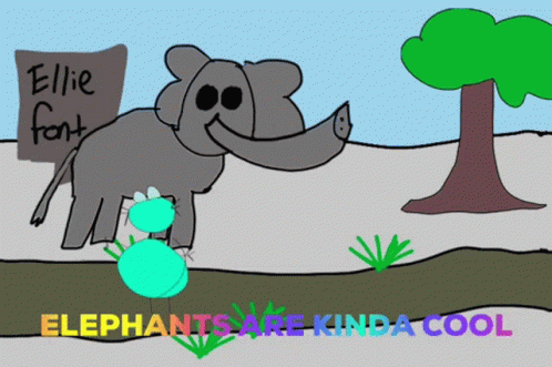 Paglalarawan ng Content: a drawing of an elephant with a sign that says ellie font on it