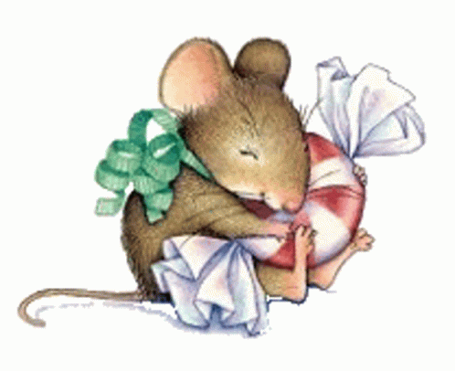 Paglalarawan ng Content: a mouse is holding a candy cane with a bow around its neck