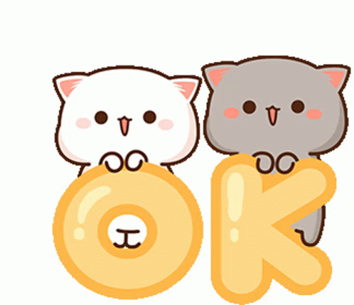 Paglalarawan ng Content: a white cat and a gray cat are holding a yellow circle that says ok