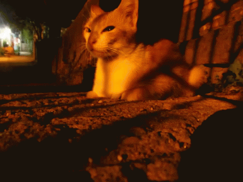 Paglalarawan ng Content: a cat is laying on the ground at night