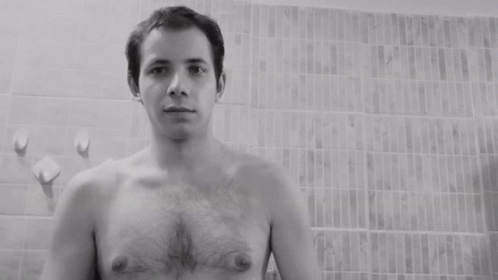 Paglalarawan ng Content: a black and white photo of a shirtless man holding a soap bar