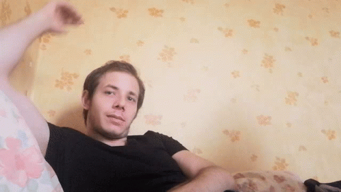 Paglalarawan ng Content: a man in a black shirt is laying in a bed