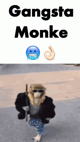 Paglalarawan ng Content: a picture of a monkey holding a gun with the words gangsta monke above it