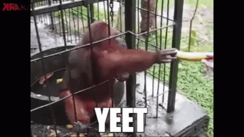 Paglalarawan ng Content: a monkey is standing in a cage and reaching out to a person .