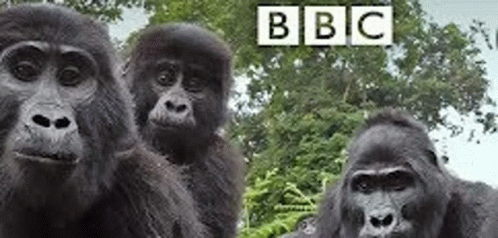 Paglalarawan ng Content: three gorillas are sitting next to each other in front of a tree .