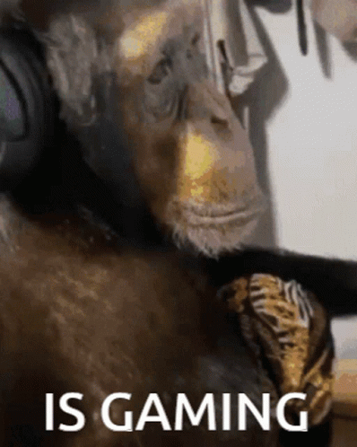 Paglalarawan ng Content: a chimpanzee wearing headphones with the words is gaming written below it