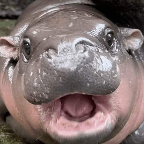 Paglalarawan ng Content: a baby hippopotamus is looking at the camera with its tongue hanging out .