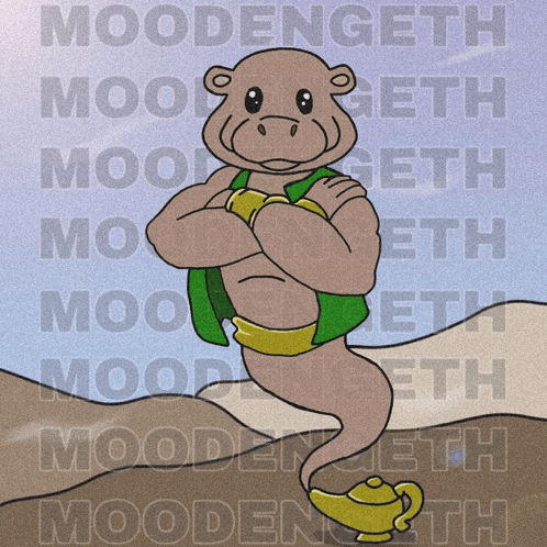 Paglalarawan ng Content: a cartoon drawing of a genie with the name moodengeth on the bottom right