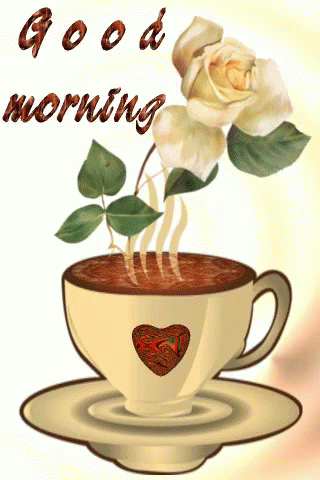 Paglalarawan ng Content: a cup of coffee with a heart on it and the words good morning written above it