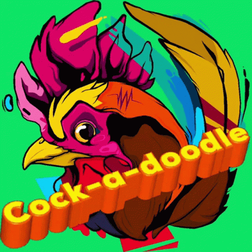 Paglalarawan ng Content: a colorful drawing of a rooster with the words cock-a-doodle above it