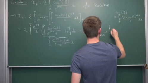Paglalarawan ng Content: a man stands in front of a blackboard with equations written on it including one that says " consider "