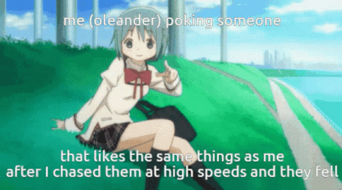 Paglalarawan ng Content: a cartoon of a girl giving a thumbs up with the words me oleander poking someone