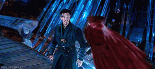 Paglalarawan ng Content: doctor strange is standing on a bridge in a dark room in a superhero movie .