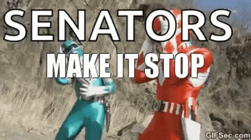 Paglalarawan ng Content: a gif of two power rangers fighting each other with the caption `` senators make it stop '' .