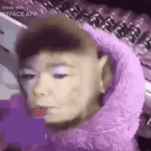 Paglalarawan ng Content: a monkey wearing a purple hoodie is looking at a phone .