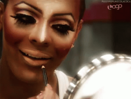 Paglalarawan ng Content: a close up of a woman applying makeup in front of a mirror .