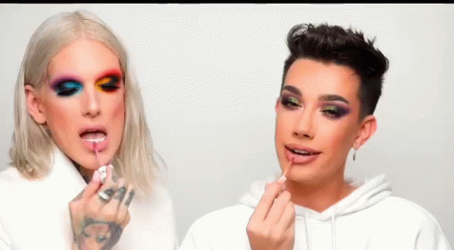Paglalarawan ng Content: a man is applying makeup to another man 's face .