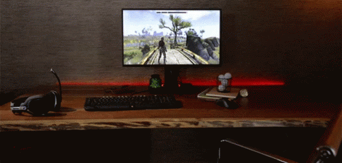 Paglalarawan ng Content: a computer monitor displays a video game called skyrim