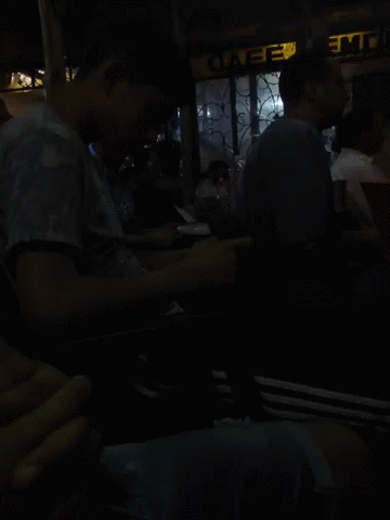 Paglalarawan ng Content: a man sits in front of a sign that says cafe