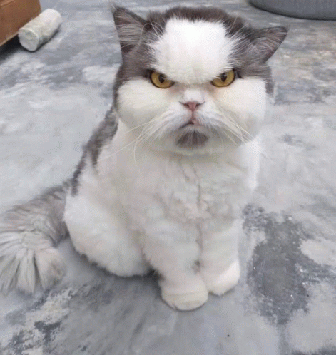 Paglalarawan ng Content: a black and white cat with a very angry look on his face