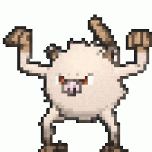 Paglalarawan ng Content: a pixel art drawing of a sheep with its arms up