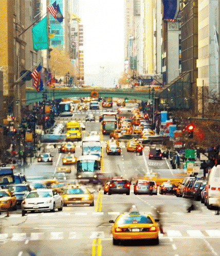 Paglalarawan ng Content: a busy city street with a taxi that has a license plate that starts with the letter t