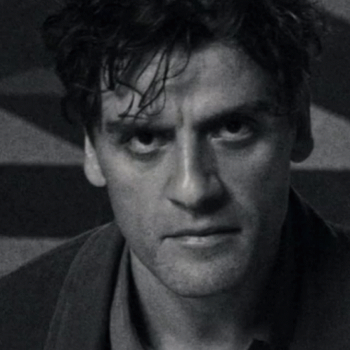 Paglalarawan ng Content: a black and white photo of a man 's face with a striped background