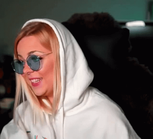 Paglalarawan ng Content: a woman in a white hoodie and sunglasses is smiling .
